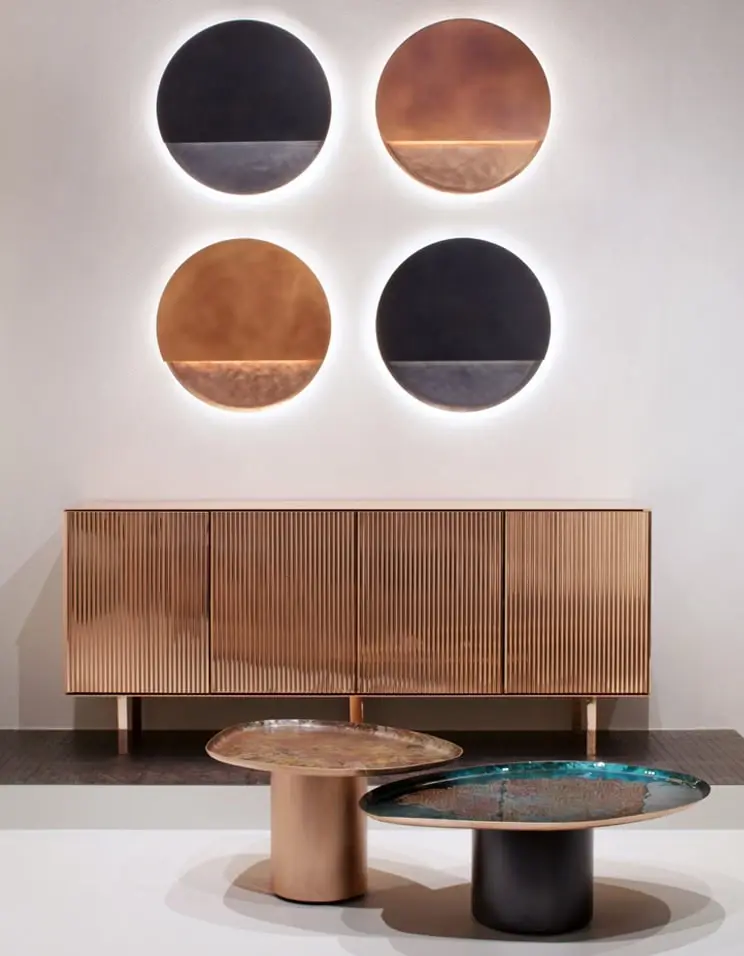 Fondée en 2003 à Crocetta del Montello, De Castelli est une maison italienne héritière d’un savoir-faire familial transmis sur quatre générations de forgerons. Elle place le métal au cœur de récits créatifs, transformant cette matière brute en un élément d’expression artistique. Qu’il s’agisse de mobilier iconique ou d’installations architecturales, la marque s’efforce de réinventer le travail du fer, du cuivre et du laiton à travers une esthétique contemporaine. Elle accorde une importance capitale à la recherche technologique et à la collaboration avec un réseau de designers et d’architectes de renom, qui façonnent ensemble l’identité visuelle de demain. L’expérimentation constante et le respect des finitions artisanales occupent une place centrale dans ses valeurs, guidant la marque vers une quête d’excellence et d’innovation permanente.