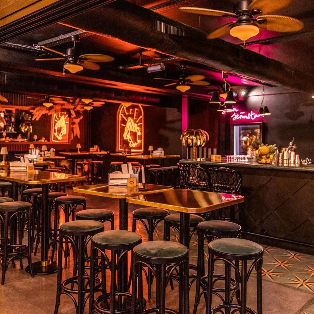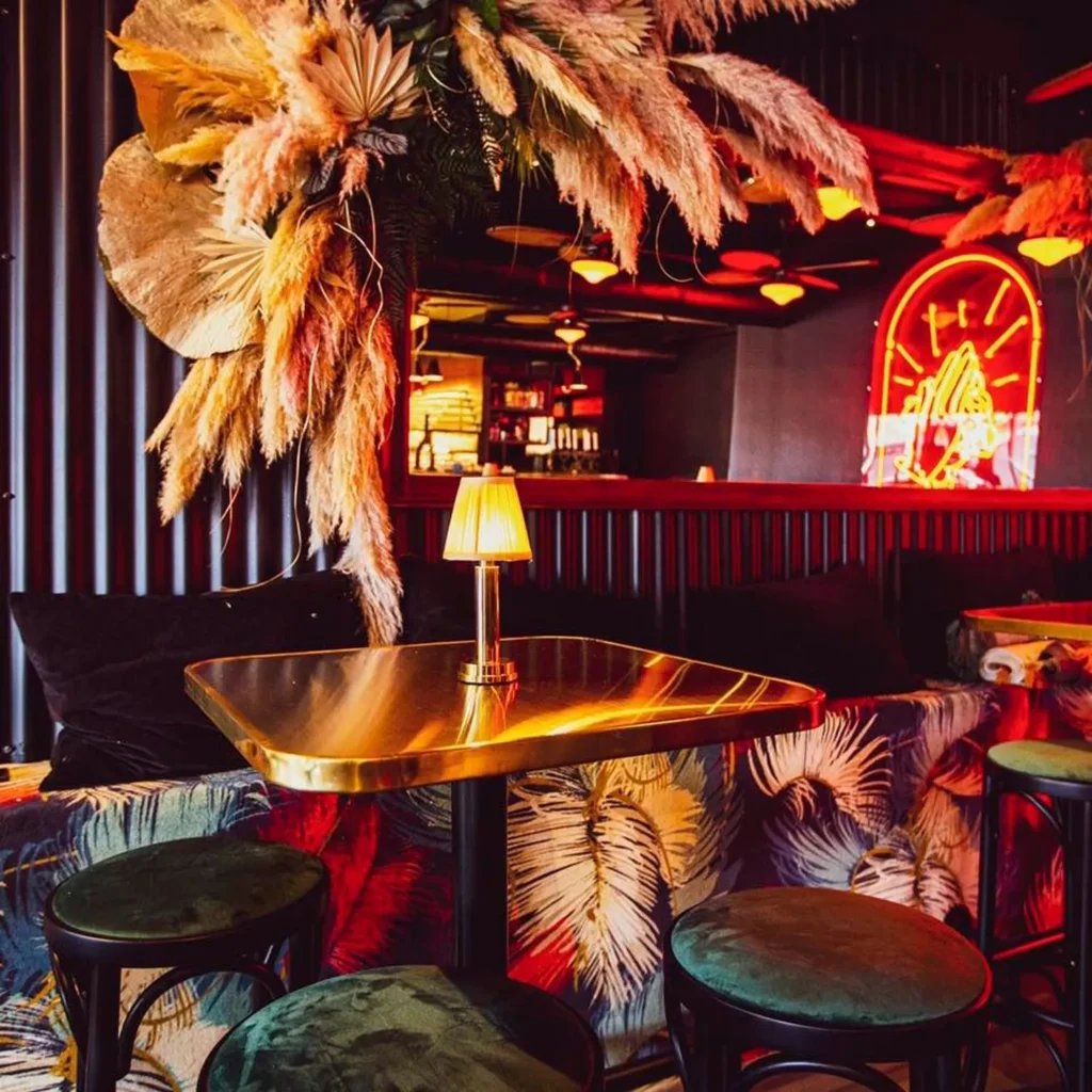Muchacha, situé aux Halles du Lez à Montpellier, se distingue par un univers vibrant inspiré de la culture latino-américaine. Pensé comme un lieu immersif, il met en avant un travail soigné sur le mobilier design et l’aménagement, créant une atmosphère conviviale et contemporaine. L’espace valorise des matériaux naturels tels que le bois, les fibres végétales et les matières brutes, associés à des pièces de mobilier aux lignes chaleureuses. Un travail approfondi sur les luminaires et l’éclairage vient structurer les volumes et renforcer l’ambiance, entre néons, suspensions et jeux de lumière, pour un cadre à la fois festif et esthétique.