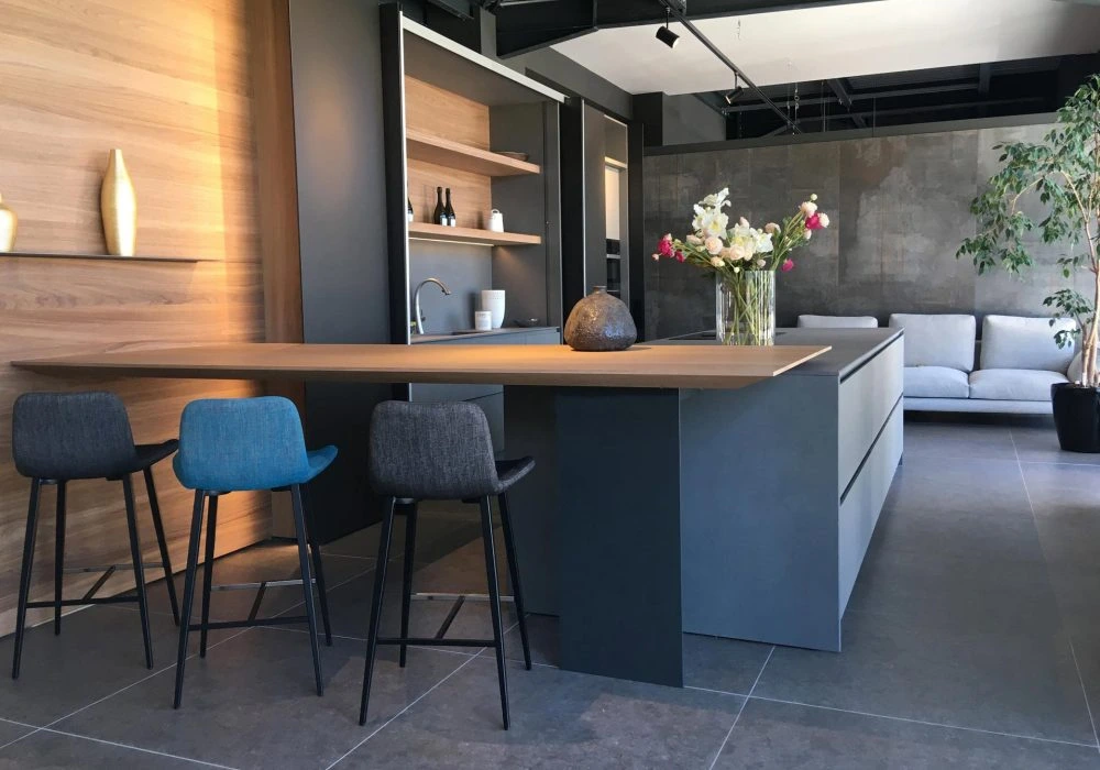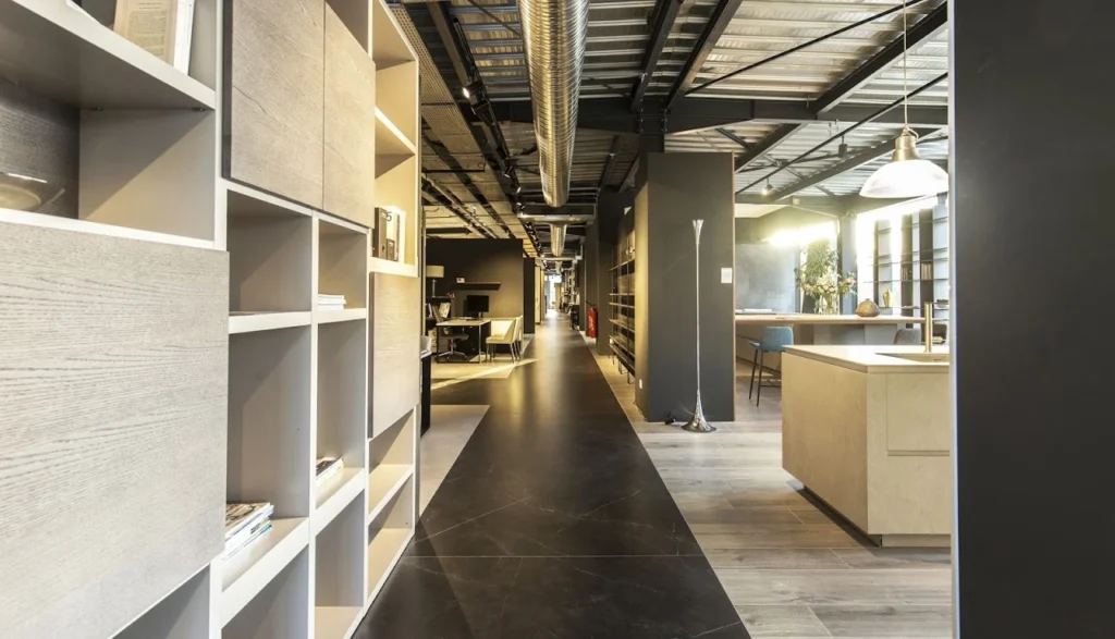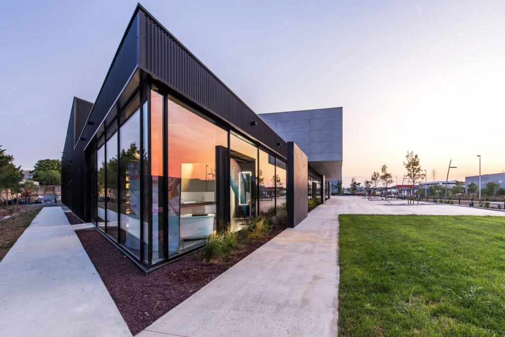 Porto Venere est un showroom dédié au design d’intérieur, situé à Montpellier, qui met en avant une large sélection de matériaux, de mobiliers contemporains et de luminaires design. Pensé comme un espace d’inspiration, le lieu valorise des pièces esthétiques et fonctionnelles dans un environnement architectural soigné. Le projet s’organise en trois volumes distincts aux fonctions complémentaires. Le premier, situé au rez-de-chaussée, accueille les visiteurs et présente les collections de mobilier et d’éclairage, visibles depuis l’extérieur grâce à de larges ouvertures qui renforcent l’attractivité du showroom. En retrait, un second volume est dédié au stockage, implanté de manière stratégique pour faciliter la logistique tout en préservant l’esthétique et la fluidité des espaces de présentation.